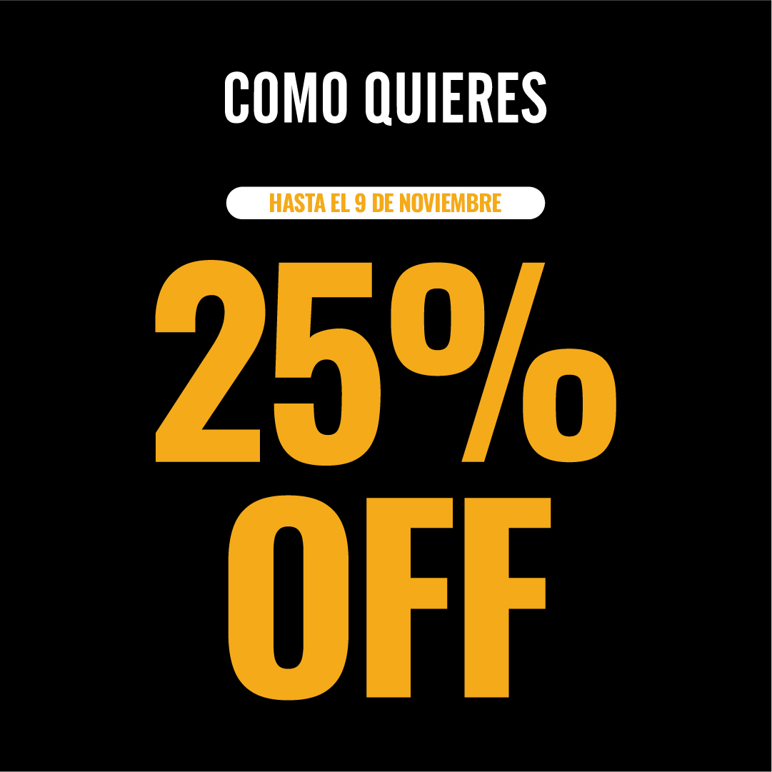 PROMOCIÓN VÁLIDA DESDE EL 30/10/2025 AL 09/11/2025. PARTICIPAN TODOS LOS ARTÍCULOS CUYOS CÓDIGOS COMIENZAN CON S26 Y TERMINAN EN 1 Y 2. NO PARTICIPAN ARTÍCULOS CUYOS CÓDIGOS COMIENZAN CON CQQ Y TERMINAN EN 1, ARTÍCULOS REMANENTES Y LENTES. NO ACUMULABLE CON OTRAS PROMOCIONES VIGENTES Y/O CONCLUIDAS. CAMBIOS A 30 DÍAS POR PRODUCTOS PARTICIPANTES AL VALOR ACTUAL VIGENTE. VÁLIDO ÚNICAMENTE EN TODOS LOS LOCALES COMO QUIERES DE LA REPÚBLICA ARGENTINA. CONSULTAR DIRECCIONES EN WWW.COMOQUIERES.COM.AR O AL +54 91 169578303 (LINEA WHATSAPP). GRUPO ALTATEX. GENERAL PACHECO 1920, DON TORCUATO, BUENOS AIRES.