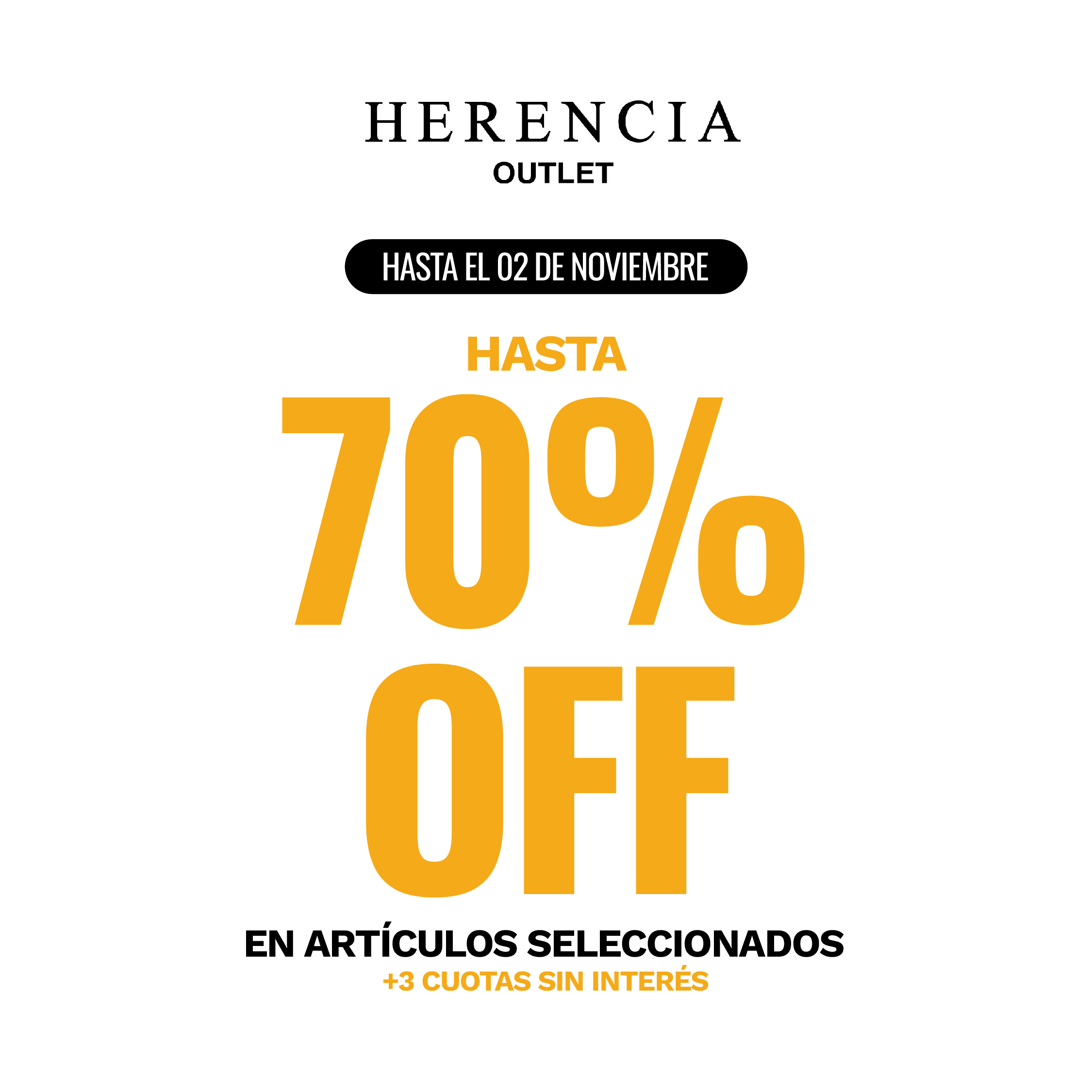 PROMOCIÓN VÁLIDA EN EL LOCAL KOSIUKO OUTLET ubicado en SOLEIL OUTLET Y DISTRITO ARCOS . Desde el 20/10/25 AL 2/11/25 inclusive . Hasta -70% EN ART SELECCI0NADOS KSK Y HERENCIA . no acumulable. 3 cuotas sin interes. para cambios se toman los art al valor abonado. SÓLO PARA COMPRAS. VALIDO CON TODOS LOS MEDIOS DE PAGO ACEPTADOS POR EL LOCAL. 3 CUOTAS SIN INTERES abonando con master, visa y american bancaria,. Aplica a art con tag de Rebajas. PROMOCIÓN NO COMBINABLE NI ACUMULABLE CON OTRAS PROMOCIONES U OFERTAS VIGENTES .. NEW FAMILY CUIT 33-681345839 gurruchaga 950. caba