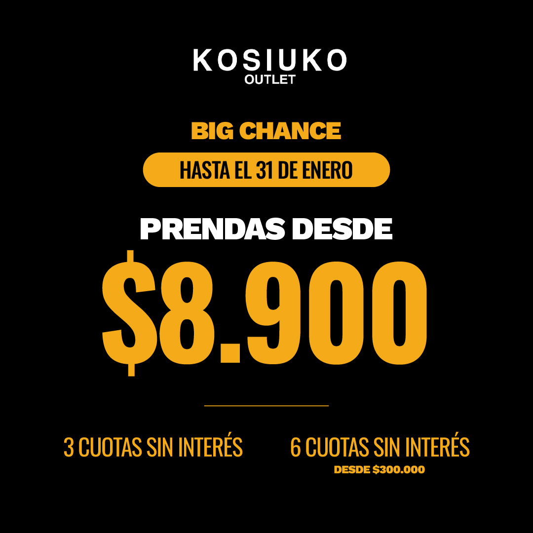 PROMOCIÓN VÁLIDA EN EL LOCAL KOSIUKO OUTLET ubicado en SOLEIL OUTLET Y DISTRITO ARCOS . Desde el 8/1/26 hasta el 31/1/26 hasta agotar stock . KSK Y HERENCIA . 3 cuotas sin interes. 6 cuotas sin interes desde $300.000 para cambios se toman los art al valor abonado. VALIDO CON TODOS LOS MEDIOS DE PAGO ACEPTADOS POR EL LOCAL. 3 CUOTAS SIN INTERES abonando con master, visa y american bancaria,.No Aplica a art con tag de Rebajas. PROMOCIÓN NO COMBINABLE NI ACUMULABLE CON OTRAS PROMOCIONES U OFERTAS VIGENTES .. NEW FAMILY CUIT 33-681345839 gurruchaga 950. caba