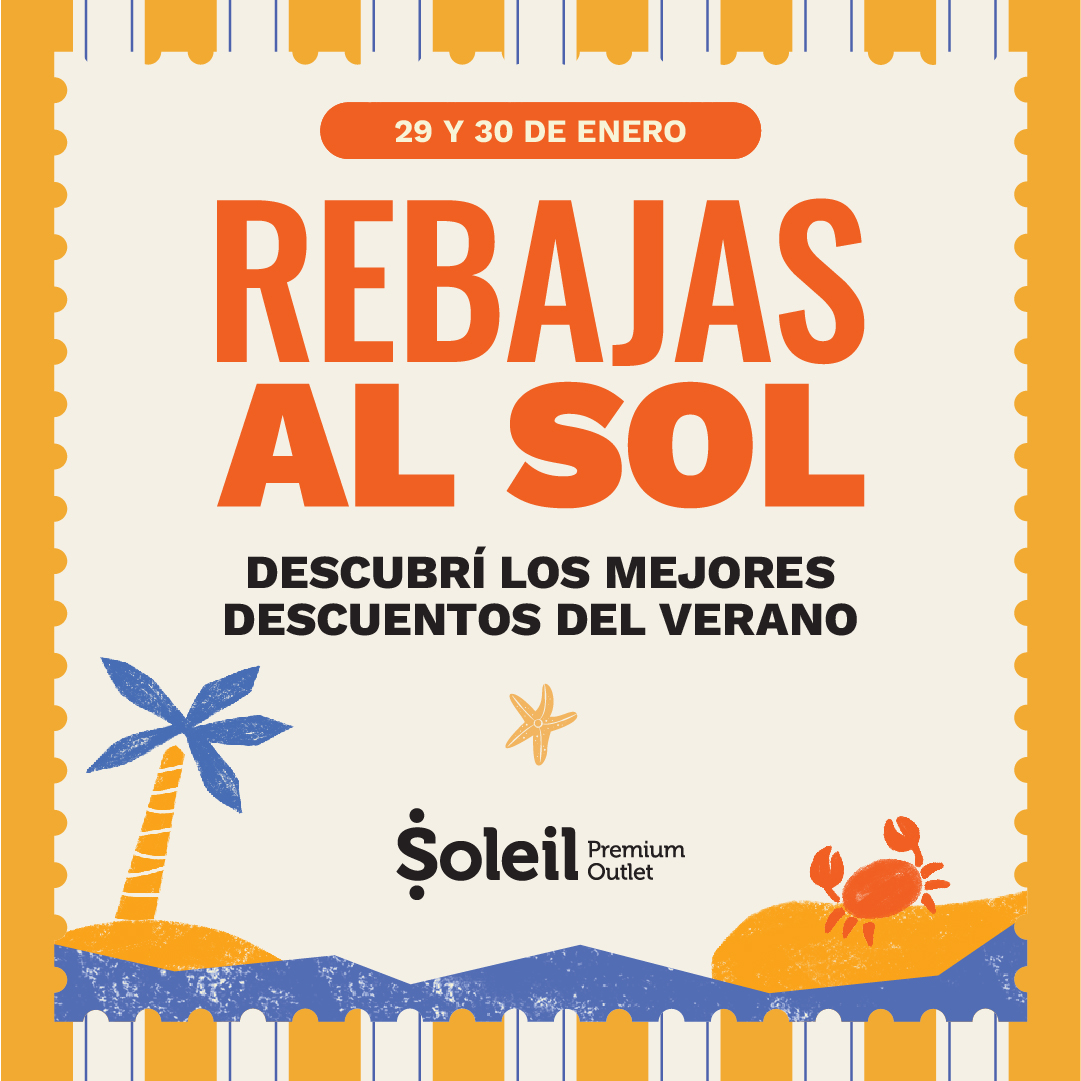 PROMOCIÓN VÁLIDA EN SOLEIL, SITO EN EL BERNARDO DE IRIGOYEN 2647, BOULOGNE, PROVINCIA DE BUENOS AIRES. DESDE EL 29 DE ENERO DE 2026 AL 30 DE ENERO DE 2026, DESDE LAS 10HS HASTA LAS 22HS LOS LOCALES PARTICIPANTES DEL SHOPPING OFRECERÁN PROMOCIONES Y DESCUENTOS. CONSULTE DESCUENTOS/PROMOCIONES APLICABLES, MEDIOS DE PAGO, PRODUCTOS ADHERIDOS Y CONDICIONES EN CADA LOCAL PARTICIPANTE. LOS LOCALES PARTICIPANTES SE ENCONTRARÁN IDENTIFICADOS CON UN STICKER / CARTEL DE LA PROMOCIÓN. IRSA INVERSIONES Y REPRESENTACIONES SOCIEDAD ANÓNIMA, CUIT 30-52532274-9, CARLOS DELLA PAOLERA 261, PISO 9, CABA.